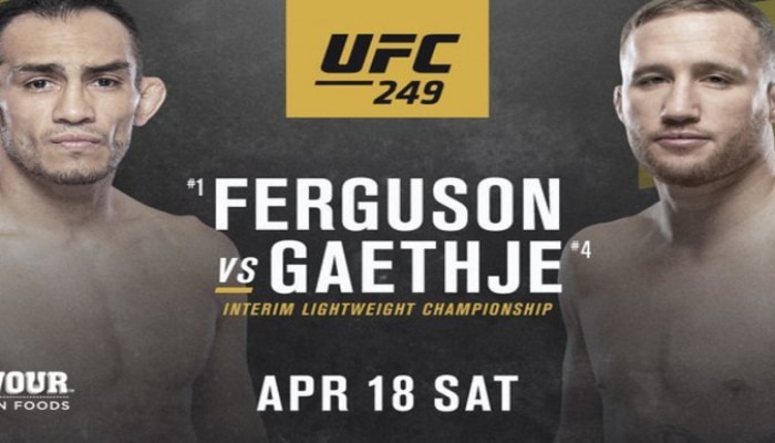 Фергюсон и Гейджи должны были провести поединок за временный титул чемпиона в легком весе. При этом Нурмагомедов сохранял чемпионский пояс. Ранее сообщалась, что защита титула может состояться осенью против победителя главного боя на турнире UFC 249.