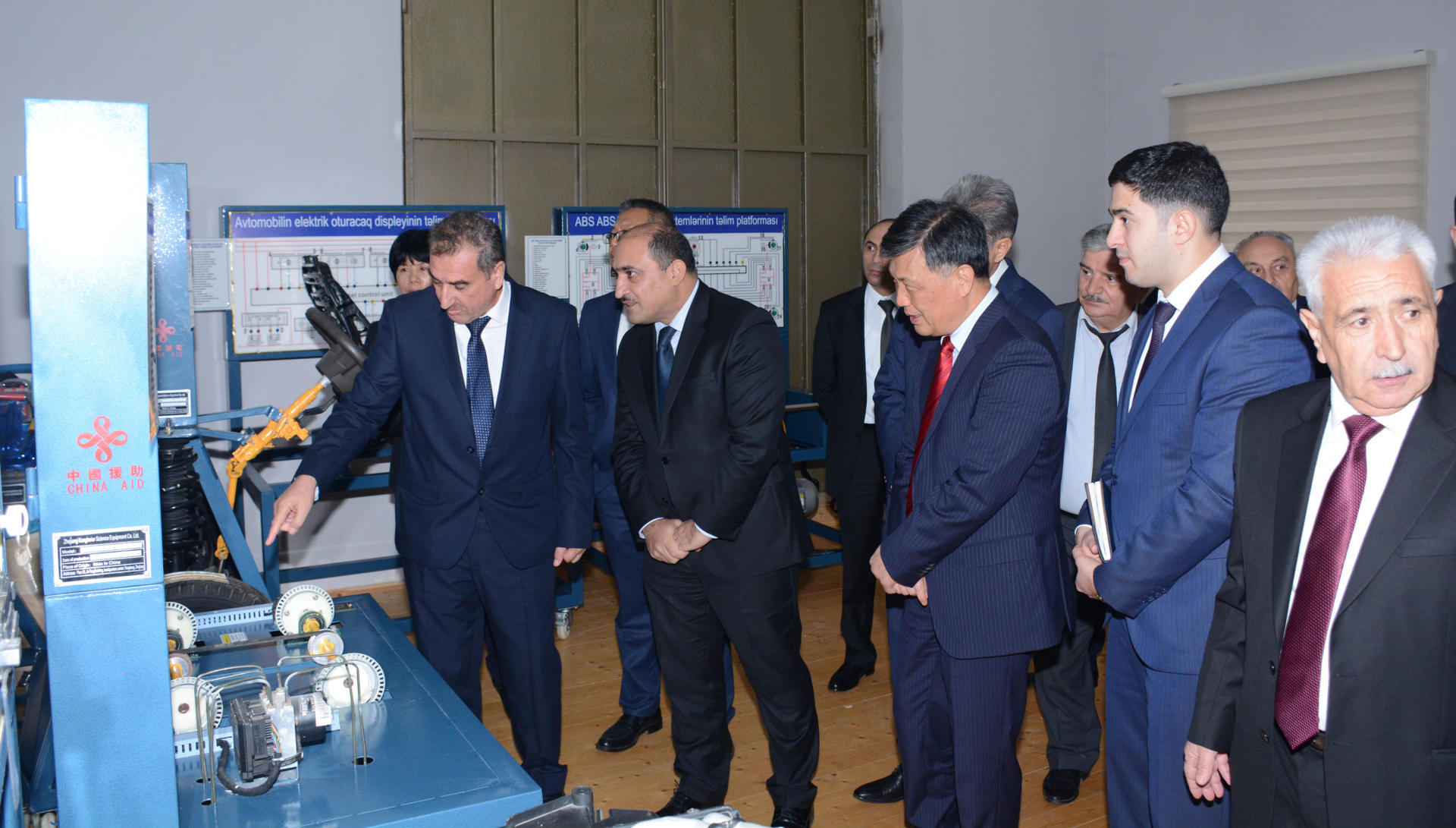 В ходе мероприятия заместитель министра образования Азербайджана Идрис Исаев сказал, что для осуществления подготовки и повышения квалификации водителей автотранспорта различной категории в рамках соглашения между правительствами Азербайджана и Китая в Азербайджан доставлено 168 симуляторов различного назначения 70 наименований, а также оборудования по системам обучения, рабочих столов, механизмов, инструментов и других принадлежностей. Это оборудование было установлено в Профессиональном лицее Абшерон-Бина, Гянджинском государственном центре профобразования по промышленности и технологиям.