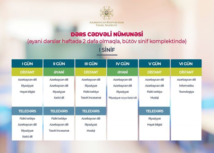 Министерство образования Азербайджана представило образцы школьного расписания для учащихся и преподавателей в рамках гибридного обучения (очное и удаленное обучение)