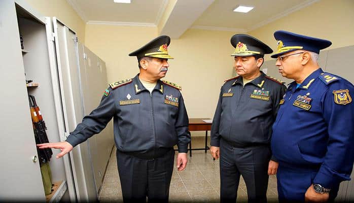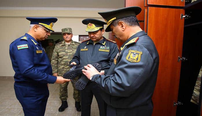 Руководство министерства обороны осмотрело боевую технику и средства подразделений ПВО, а также здание штаба, солдатскую казарму, столовую, строевой плац, медпункт, прачечную, другие служебные и административные помещения.