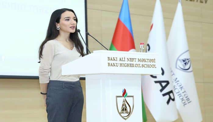 Заместитель заведующего отделом по вопросам гуманитарной политики Администрации Президента Магеррам Ахмедов, исполнительный директор Фонда молодежи Фархад Гаджиев и председатель Молодежного объединения ПЕА Сеймур Оруджев, поздравив студентов БВШН с Днем молодежи, призвали их принимать активное участие в социально-экономическом развитии страны. От имени выпускников вуза выступила специалист по охране окружающей среды компании BP в Азербайджане Мехрибан Алиева, окончившая БВШН в 2018 году по специальности «Инженер по нефти и газу». Она также поздравила собравшихся с праздником и рассказала о достигнутых ею успехах.