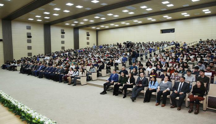 Ректор Эльмар Гасымов тепло поздравил студентов вуза и азербайджанскую молодежь с праздником и отметил, что основы нынешней государственной молодежной политики были заложены общенациональным лидером Гейдаром Алиевым. Он напомнил, что второго февраля 1997 года великий лидер Гейдар Алиев подписал распоряжение об объявлении этого дня Днем молодежи Азербайджана. По словам ректора, благодаря вниманию и заботе Президента Азербайджана Ильхама Алиева успешно реализуется специальная Государственная программа «Азербайджанская молодежь в 2017-2021 гг.», в регионах создаются молодежные центры, оказывается всесторонняя поддержка образованию, культурному развитию, общественной деятельности и международной интеграции азербайджанской молодежи. «День молодежи, который празднуется по всей стране, ежегодно торжественно отмечается и в Высшей школе, которая в своей деятельности руководствуется принципами государственной молодежной политики», - сказал Эльмар Гасымов.