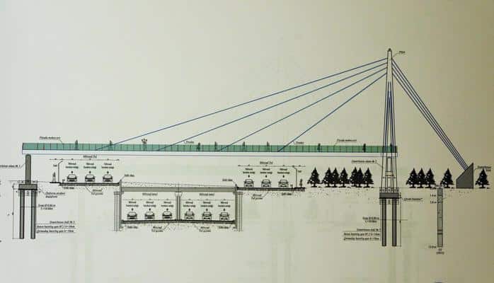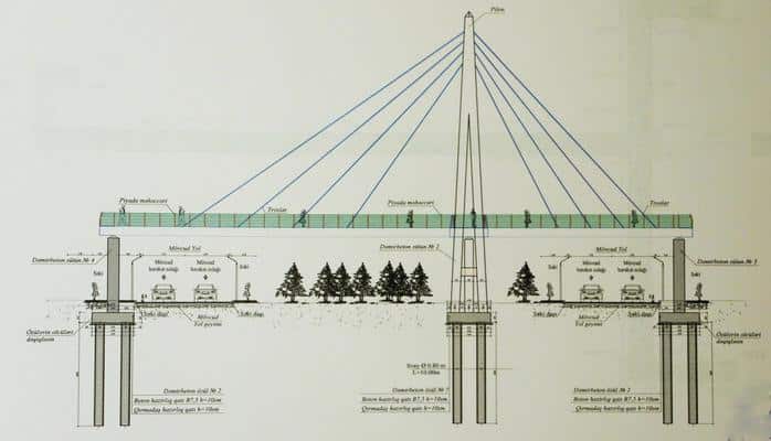 По словам главы пресс-службы общая протяженность надземного пешеходного перехода составит 134 метра, он не будет иметь опор и будет держаться на специальных подвесах (тросах). Соответственно, этот надземный переход станет первым в Баку подвесным пешеходным переходом.