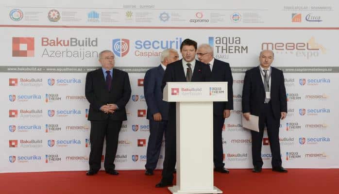 Заместитель председателя Государственного комитета по градостроительству и архитектуре Довлатхан Довлатханов, исполнительный директор компании ITE Group Эдвард Строон и другие рассказали о вкладе, который внесет данная выставка в развитие строительного сектора Азербайджана.