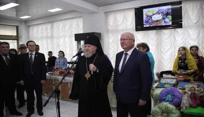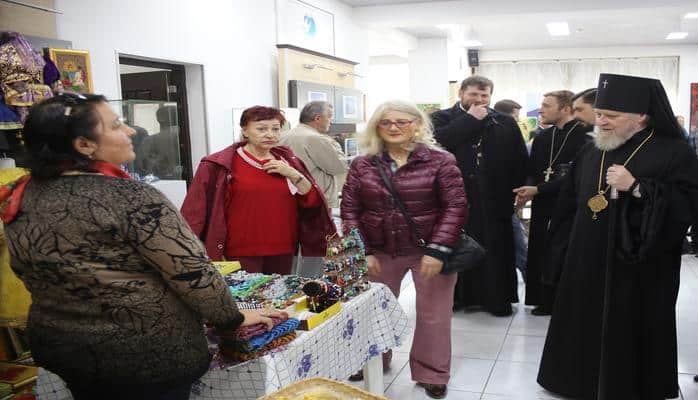 Гостей и участников благотворительного базара приветствовали руководитель представительства Россотрудничества в Азербайджане Валентин Денисов и архиепископ Бакинский и Азербайджанский Александр.