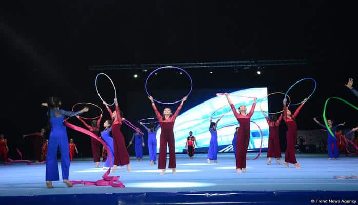 Танец - самый древний и богатый вид искусства. За многолетнюю историю азербайджанского народа возник целый ряд танцев. На церемонии открытия были продемонстрированы все виды гимнастики с элементами азербайджанского национального танца. Особенно запоминающимся стало выступление гимнасток с лентами.