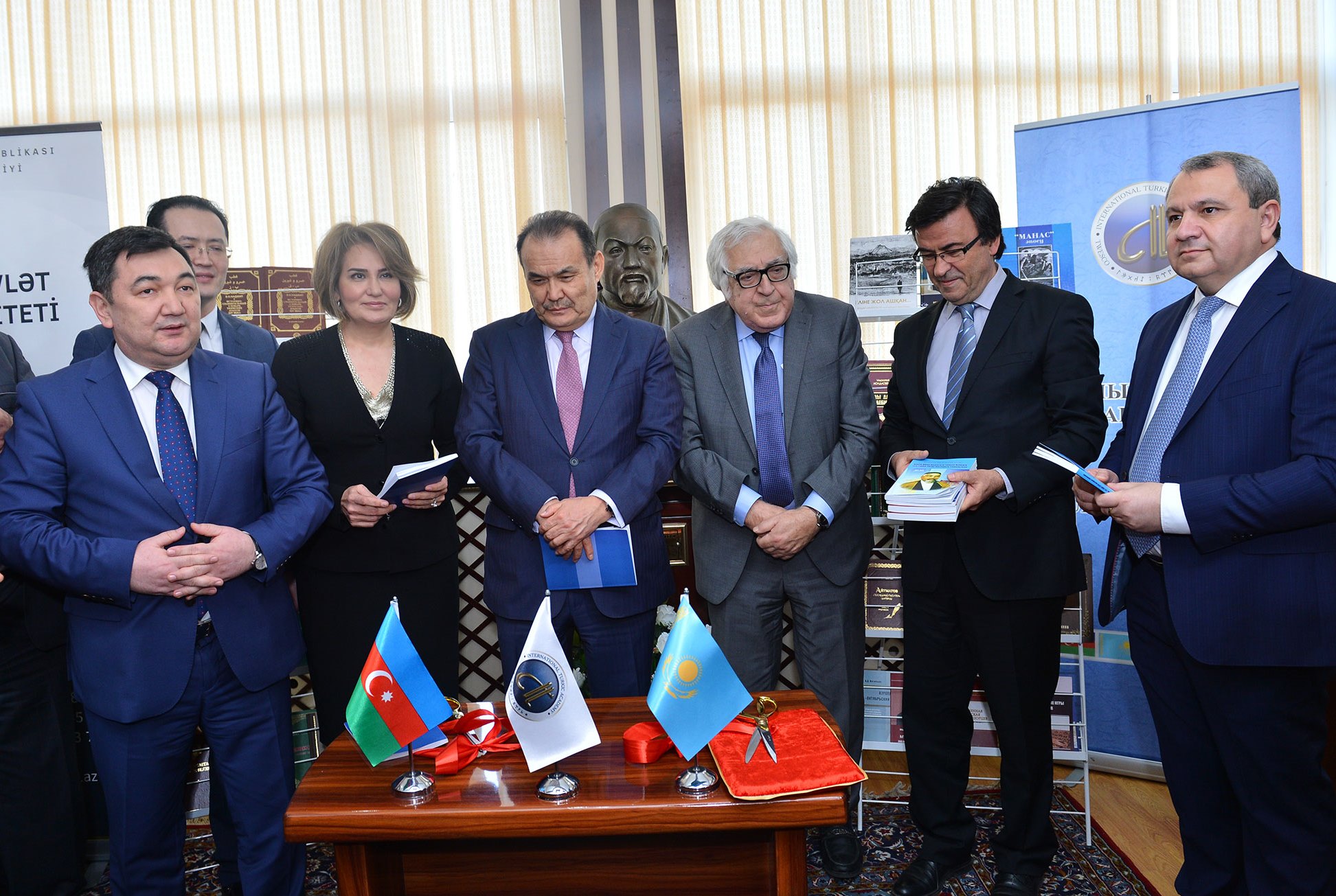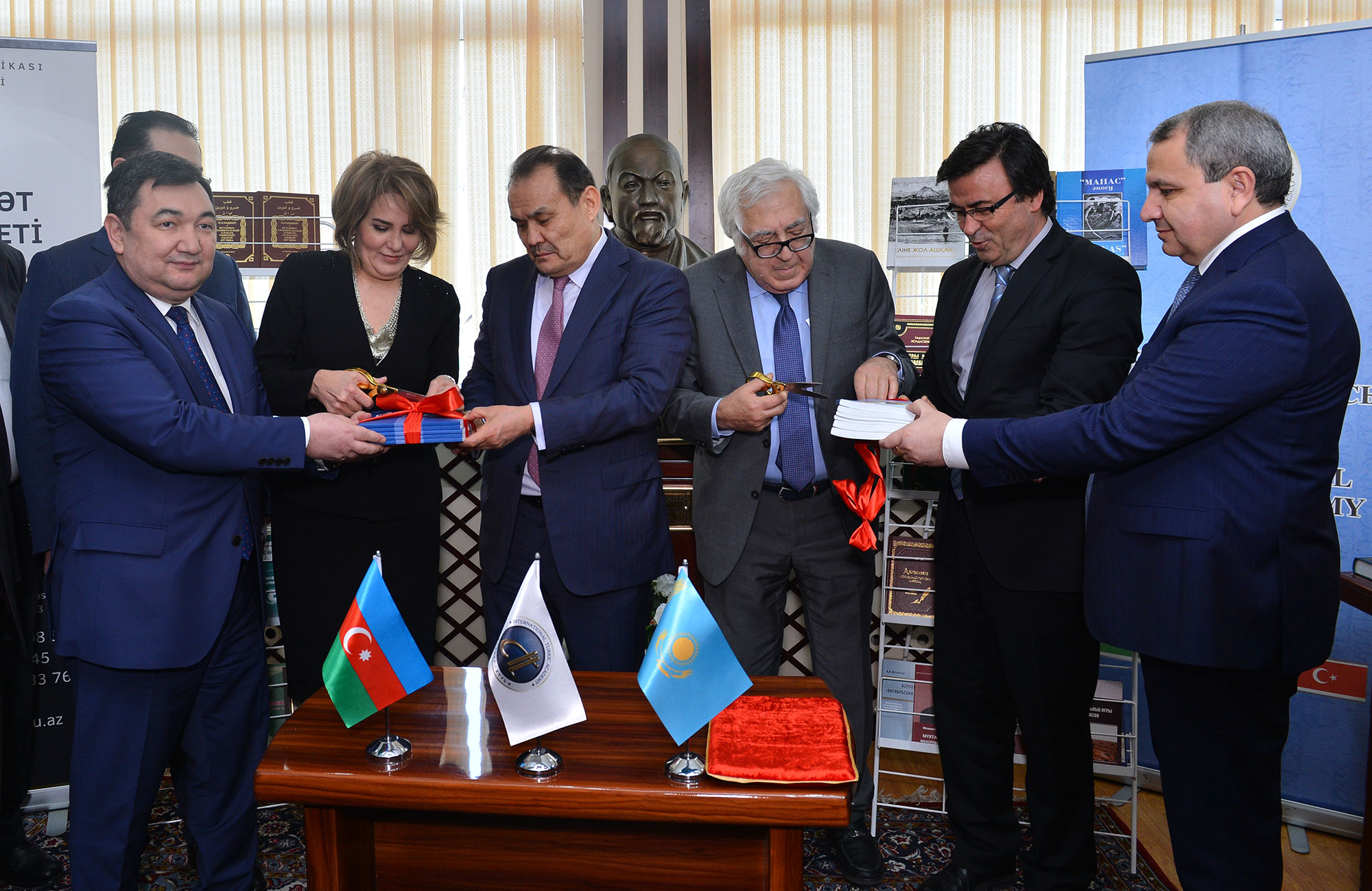 Перед началом мероприятия гости посетили Центр казахского языка, истории и культуры имени Абая Кунанбаева при БГУ и ознакомились с книжной выставкой. Президент МТА Дархан Кыдырали подарил центру около 60 наименований книг, в том числе изданная МТА исследование азербайджанского ученого Турана Теймурова «Художественные вопросы романа «Абай» Мухтара Ауэзова».