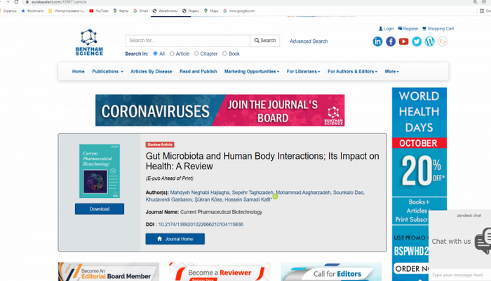 Статья «Взаимодействие организма человека с микробиотой кишечника и его влияние на здоровье» («Gut Microbiota and Human Body Interactions; Its Impact on Health: A Review») увидела свет в журнале Current Pharmaceutical Biotechnology (2021, v. 22 (15), p. 1-11) DOI:10.2174/1389201022666210104115836