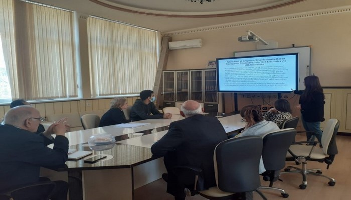 На семинаре с одноименным докладом выступила младший научный сотрудник лаборатории Лала Гахраманлы. Она проинформировала участников семинара о нанопроводах, структуре, свойствах оксида графена, основных методах получения, технологиях получения в виде композитных материалов, современных применениях.