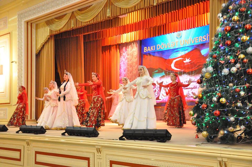 В Бакинском государственном университете (БГУ) состоялось мероприятие, посвященное 31 декабря – Дню солидарности азербайджанцев мира и Новому году. Вначале участники мероприятия возложили цветы к бюсту великого лидера Гейдара Алиева в фойе университета.