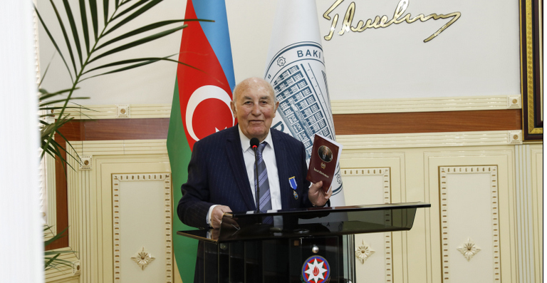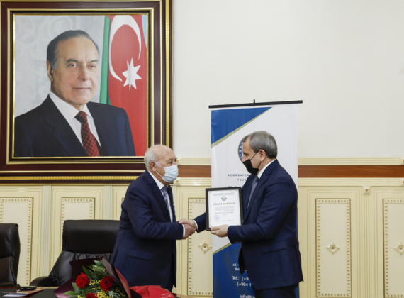 Затем ректор Эльчин Бабаев наградил Иззета Рустамова почетной грамотой.