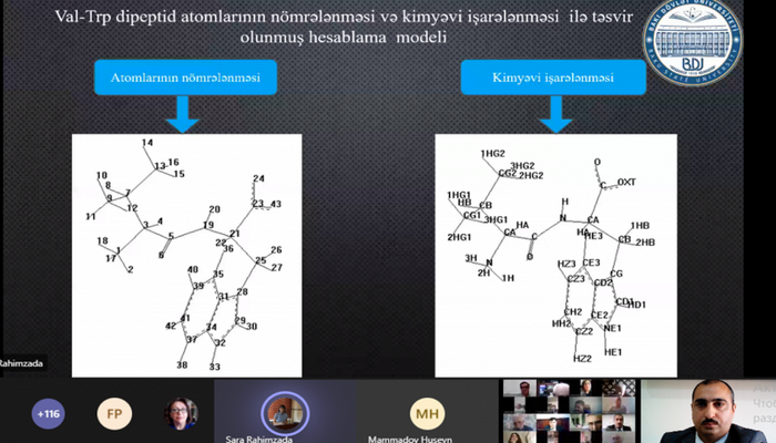 На конференции с докладами выступили сотрудник научно-исследовательского института физических проблем БГУ Сара Рагимзаде, докторант кафедры теоретической физики физического факультета Эмилия Омарова и сотрудник Центра наноисследований Орхан Гюльахмедов.