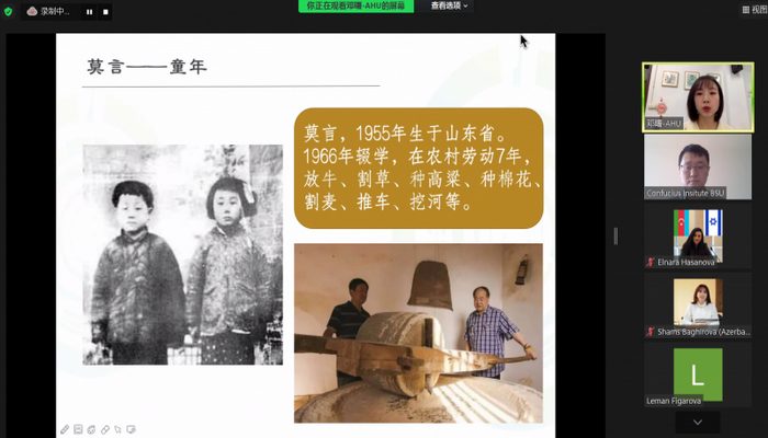 Бакинский государственный университет (БГУ) и Институт Конфуция в рамках проекта «Современные романы китайской литературы» совместно организовали онлайн-лекцию на тему «Современная литература».