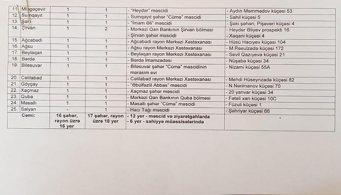 В Баку акции по сдаче крови состоятся в 15 местах восьми районов (13 мечетей и святилищ, два учреждения здравоохранения).