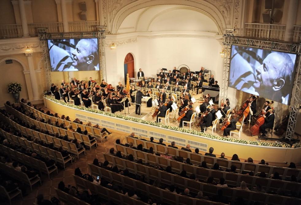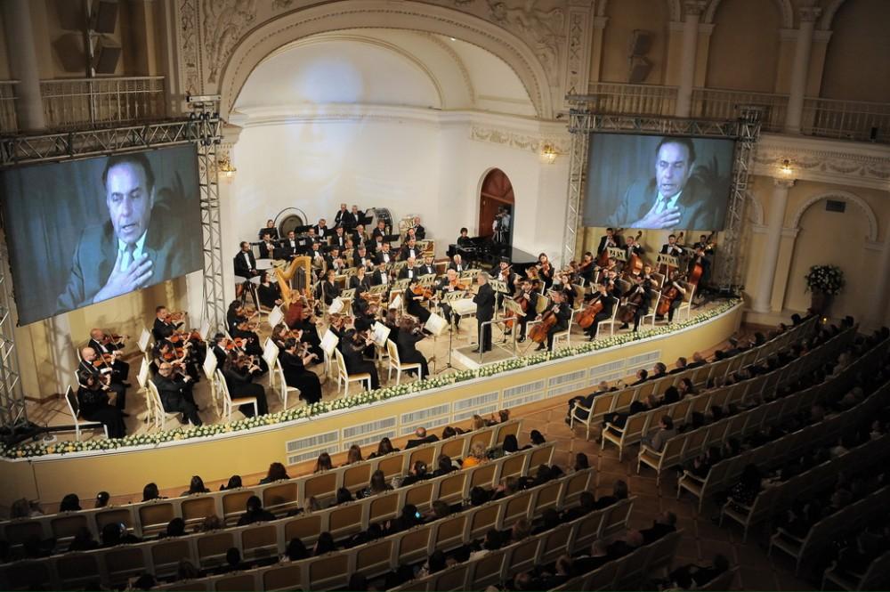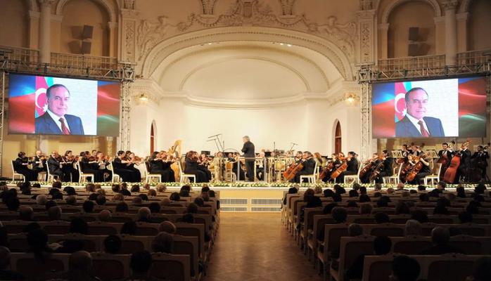 В ходе исполнения оркестром произведения на экране демонстрировались видеофрагменты, посвященные жизни и деятельности общенационального лидера Гейдара Алиева
