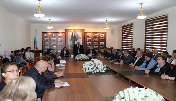 Эльчин Бабаев говорил о славном пути развития БГУ - первого учебного заведения нового типа на мусульманском Востоке. Ректор отметил, что юбилей вуза в соответствии с Распоряжением Президента Ильхама Алиева «О проведении 100-летия Бакинского государственного университета» широко отмечается как в Азербайджане, так и за рубежом, и в ноябре в Баку будет проведено большое торжественное заседание.