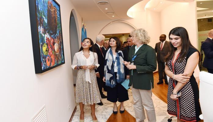 Вице-президент Фонда Гейдара Алиева Лейла Алиева и заместитель генерального директора Продовольственной и сельскохозяйственной организации ООН Лаурент Томас разрезали ленту, символизирующую открытие комнаты.