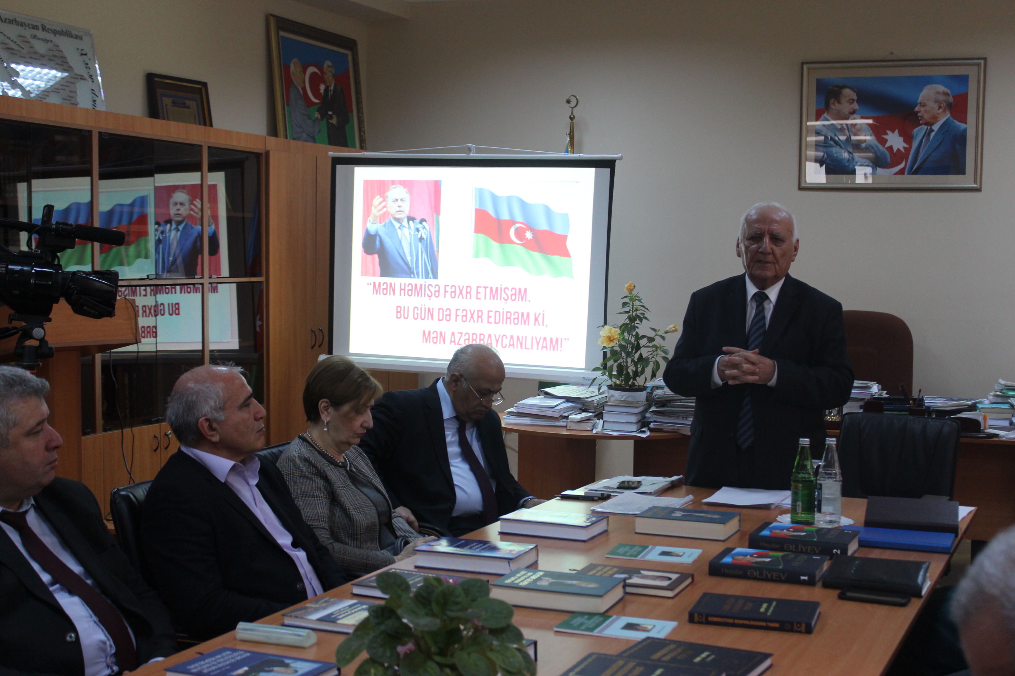 Согласно сообщению институту, открывая мероприятие, директор учреждения, академик Ягуб Махмудов сказал, что более чем пятидесятилетний период истории Азербайджана ХХ века тесно связан с личностью гениального Гейдара Алиева.По словам ученого-историка, Гейдар Алиев является основателем нового Азербайджана. Великий вождь начал свою соответствующую работу с 40-х лет ХХ века. Преодолев все препятствия и трудности, с которыми он столкнулся, Гейдар Алиев возвысился до должности председателя Комитета государственной безопасности (КГБ) республики. Именно Гейдар Алиев, первым, к тому же во времена сильной советской власти, начал в высшей степени трудную и почетную задачу – азербайджанизацию и очишение КГБ от врагов нашего народа.