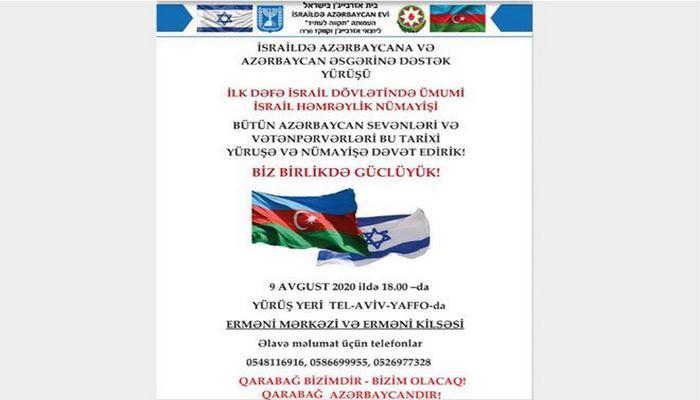 В городе Тель-Авив девятого августа будет проведена акция в поддержку азербайджанского государства и армии.