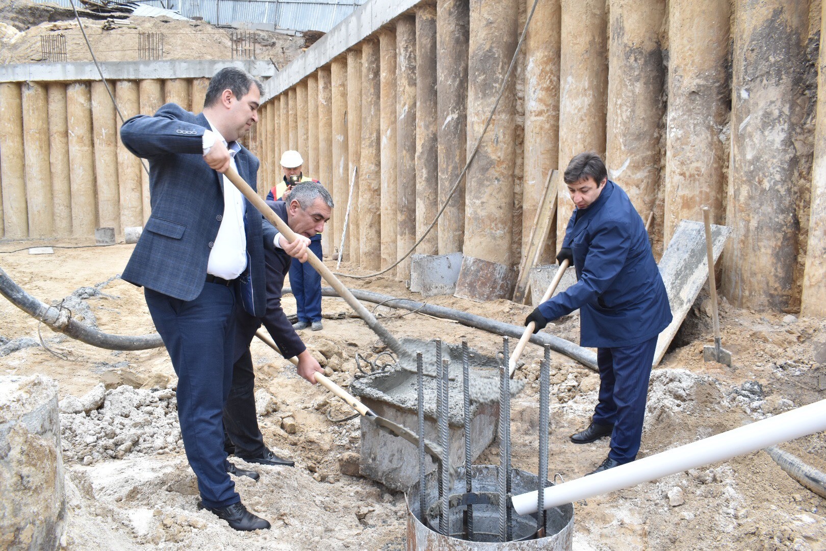 До церемонии закладки фундамента сотрудники посольства провели в парке перед комплексом, где будет установлен памятник Насими, благоустроительные работы. После посол Азербайджана в Украине Азер Худиев заложил фундамент.
