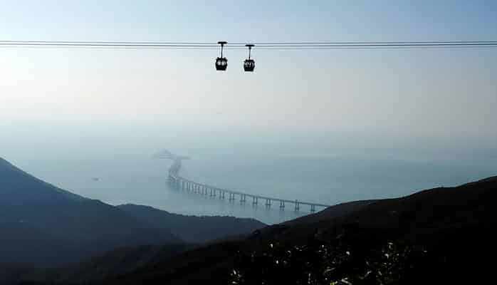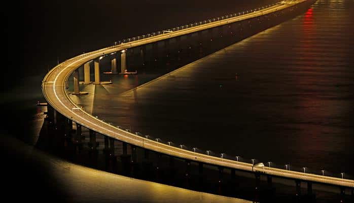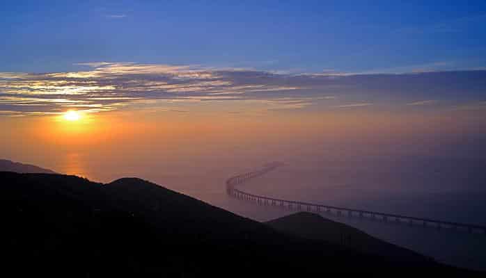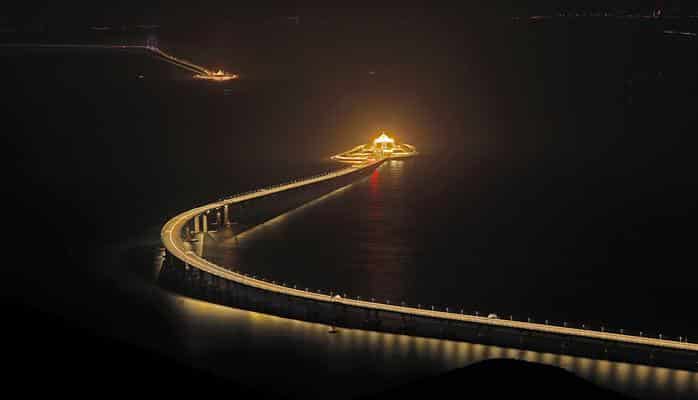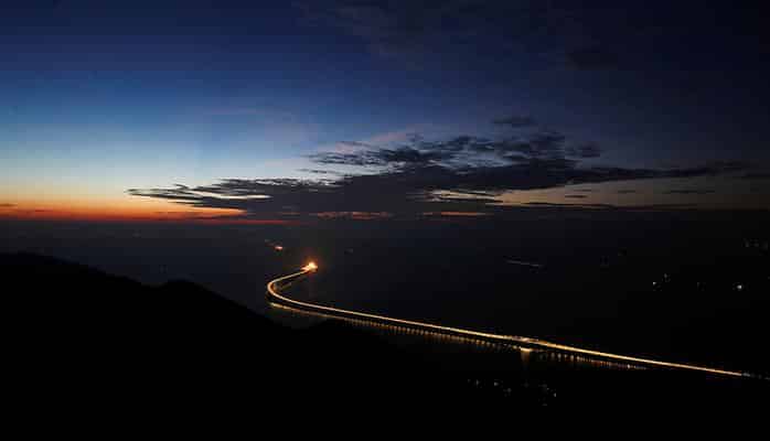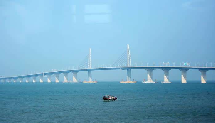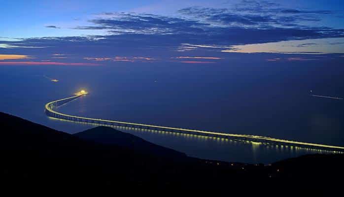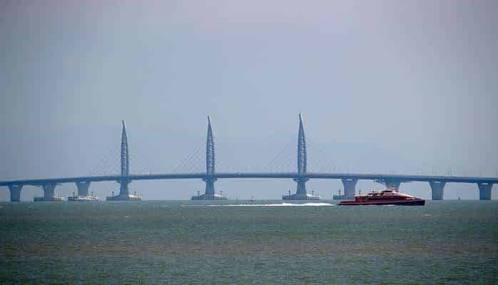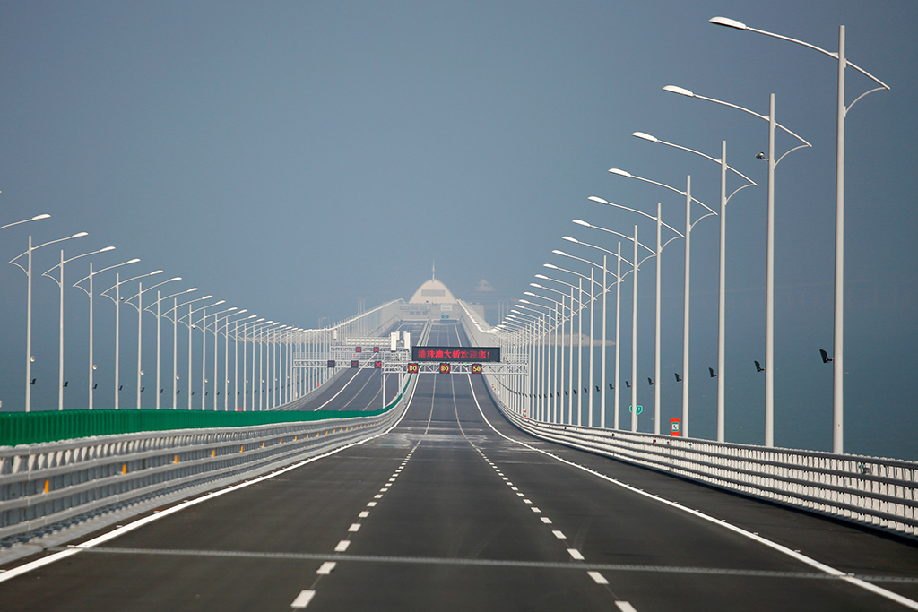 Строительство моста началось в 2009 году, а завершилось летом 2017-го, но открытие постоянно откладывали. Проект включает в себя три искусственных острова и самый длинный в мире подводный тоннель через дельту Жемчужной реки. Общая протяженность моста — 55 км. По словам создателей, сооружение может выдержать землетрясение магнитудой 8 баллов, прослужить 120 лет и сократить время в пути между Гонконгом и Чжухаем с трех часов до 30 минут.