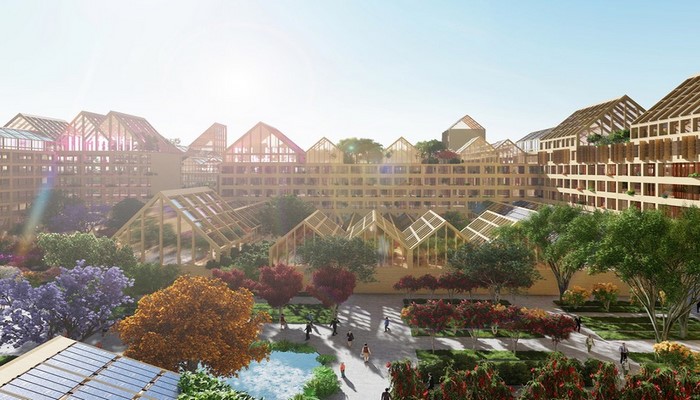 На крышах всех домов разместят теплицы, где будут выращивать продукты и одновременно получать энергию от солнечных батарей. На первых этажах оборудуют коворкинги, установят 3D-принтеры и организуют вторичную переработку отходов. Каждое здание будет собирать дождевую воду и очищать ее до питьевой.