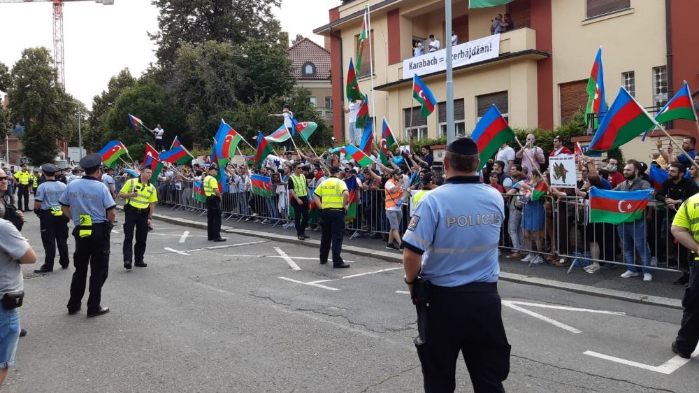 По информации, которую предоставил руководитель организации Эльдар Велиев, наши соотечественники, узнав, что перед посольством Азербайджана в Чехии соберутся армяне, тоже стали приходить сюда, чтобы выразить свою поддержку Азербайджанскому государству.