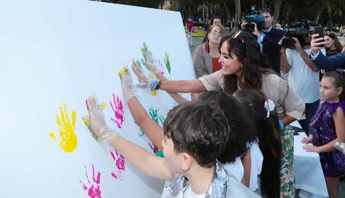 Лейла Алиева вместе с детьми выпустила в воздух голубей, являющихся символом мира.