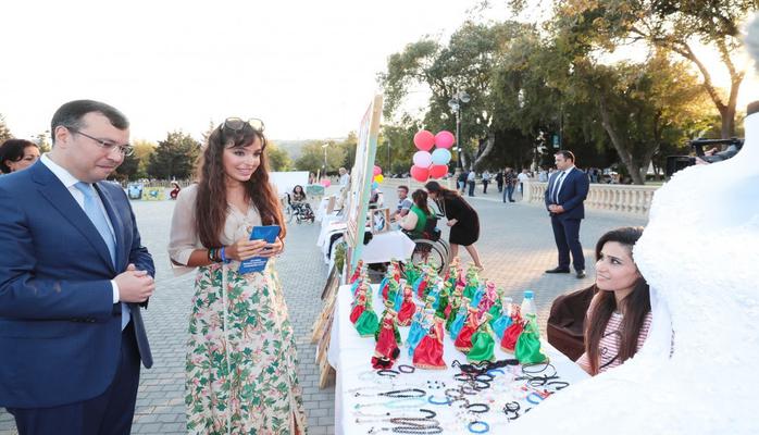 Вице-президент Фонда Гейдара Алиева Лейла Алиева посмотрела в Приморском Национальном парке выставку прикладного творчества, посвященную Международному дню мира.