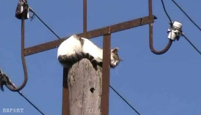 В Сальяне спасли кошку, целый день просидевшую на электрическом столбе