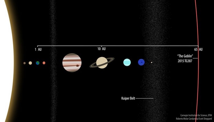 Чтобы установить его орбиту, потребовалось еще три года – Гоблин движется крайне медленно. Работа велась на базе чилийской обсерватории Лас-Кампанас и американской обсерватории Лоуэлла. Недавно специалисты представили результаты исследования. По их данным, Гоблин соответствует всем критериям карликовой планеты. Объект диаметром около 300 километров находится на расстоянии 80 астрономических единиц от Солнца (одна а.е. равна среднему расстоянию Земли до светила, то есть 150 млн км), вращаясь вокруг него по очень вытянутой орбите, уходящей далеко в облако Оорта. Только два других известных тела Солнечной системы имеют более далекий перигелий, чем Гоблин: это 2012 VP113 и Седна.