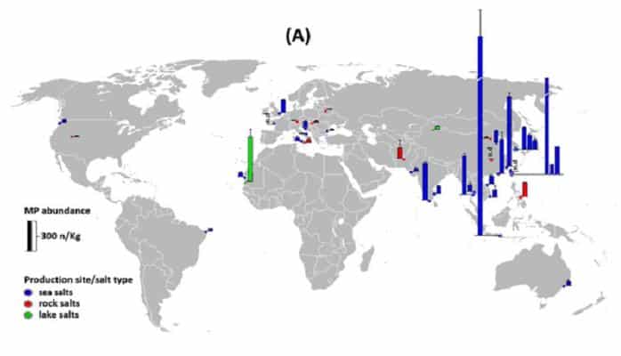 Присутствует микропластик и в соли: как в той, которую получают путем выпаривания из морской воды, так и в каменной (она добывается методом разработки шахт). Корейские ученые решили уточнить масштаб загрязнения. Для исследования было отобрано 39 образцов соли разных брендов из 16 стран, причём в 28 образцах соль была морской.