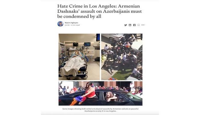 26 июля на американской онлайн-платформе Medium была опубликована статья генерального консула Азербайджана в Лос-Анджелесе Насими Агаева в связи с насилием и зверствами, совершенными армянскими дашнаками против членов азербайджанской общины в этом городе.
