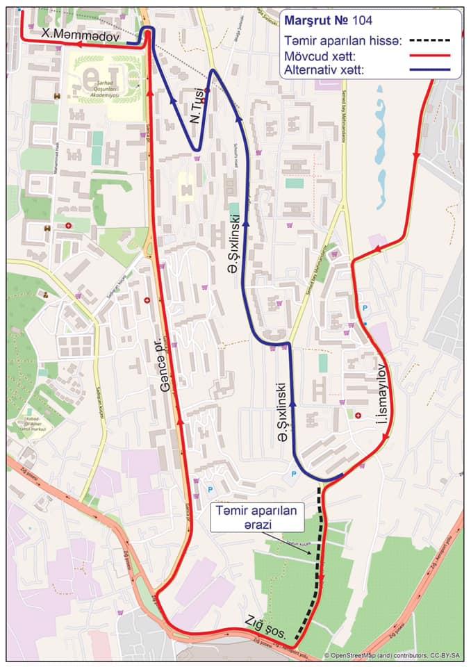 "В связи с проведением ремонтных работ на улице Инглаба Исмаилова, схема движения регулярного маршрута № 104 будет организована по альтернативной дороге до завершения ремонтных работ", - отмечается в сообщении.