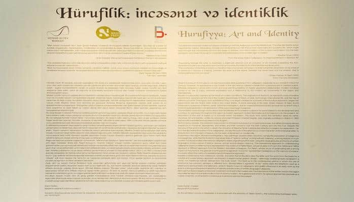 Выставка демонстрирует творческие экспонаты, связанные с хуруфизмом и пройденным им до наших дней путем развития. Экспозиция олицетворяет компактные изображения, касающиеся отдельных периодов, подходов и художников, а также вопросов, беспокоивших данных художников в XX и XXI столетиях.