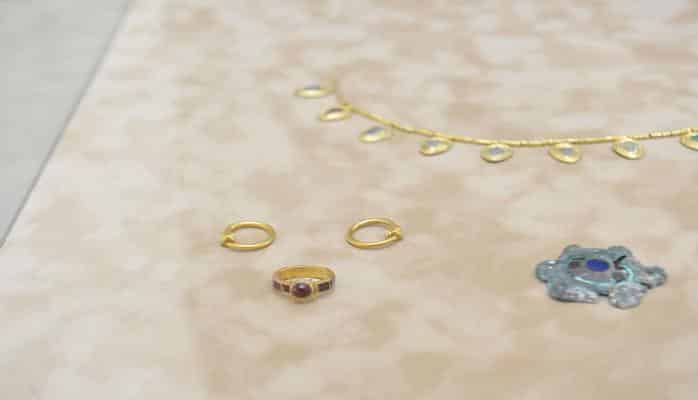 В одном из древних могильных памятников, разрушившемся в результате природного и антропогенного воздействия, было найдено 52 золотых изделия – изготовленные с высоком мастерством одна пара серьг, кольцо, листовидные и трубчатые бусы, предметы украшения в виде подвесок.