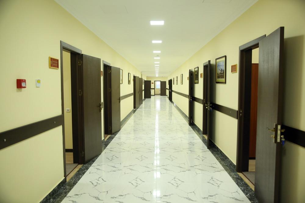 Руководство министерства также было проинформировано о двухэтажном медпункте. Было сообщено, что оснащенный современным медицинским оборудованием медпункт имеет приемное отделение, кабинеты неотложной скорой медицинской помощи, функциональной диагностики, в том числе ординаторскую, стоматологическую, процедурную и другие комнаты, а также вещевой склад, аптеку и столовую. На территории проведены работы по благоустройству.