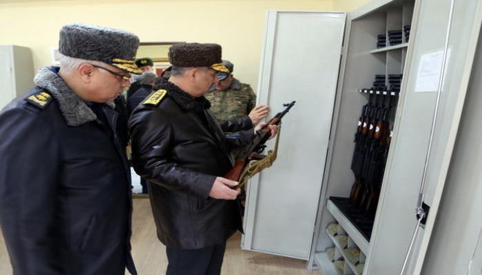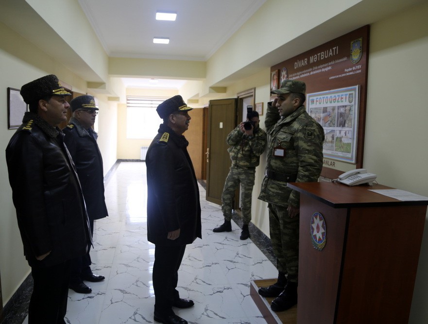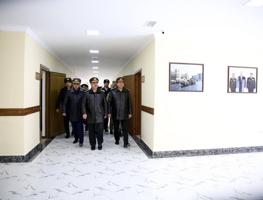 Министр обороны, генерал-полковник Закир Гасанов, побывав в двухэтажном здании штаба, солдатской казарме, классных комнатах, складах, на строевом плацу, контрольно-пропускном пункте, а также в других служебных и административных объектах, ознакомился с качеством проведенных работ.