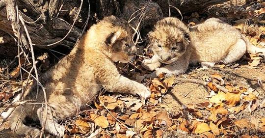 Львята Виктор и Изабель, рожденные в центре сохранения дикой природы Укутула, чувствуют себя хорошо и готовятся к встрече с взрослыми особями.