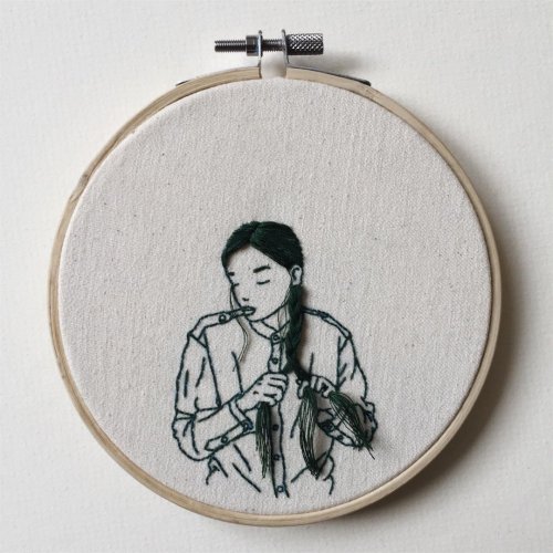 За последний год она ошеломила мир рукоделия своими вышивками с женскими силуэтами, создав им причёски из ниток, которые выходят за пределы канвы, тем самым придав трёхмерность двумерным вышивкам. Таким образом, волосы являются центральным элементом её творений.