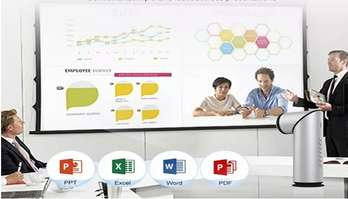 Мини-проектор несёт на борту адаптеры беспроводной связи Wi-Fi и Bluetooth 4.0. Кроме того, предусмотрены интерфейсы HDMI и USB 2.0. Питание вдали от электрической сети обеспечит встроенная аккумуляторная батарея ёмкостью 3000 мА·ч, заряда которой хватит на три часа работы.