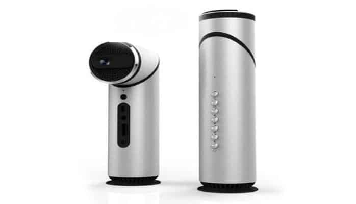 Создатели называют своё детище самым компактным в мире смарт-проектором. Устройство выполнено в цилиндрическом корпусе с длиной 192 мм и диаметром 50 мм. В верхней части располагается поворотный блок с оптикой.