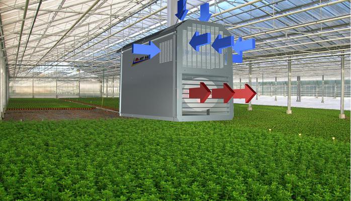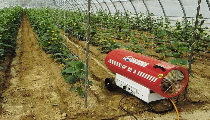 Если сравнивать с прошлым способом обогрева, то воздушное отопление позволяет прогреть всю теплицу, всего лишь, за несколько минут.