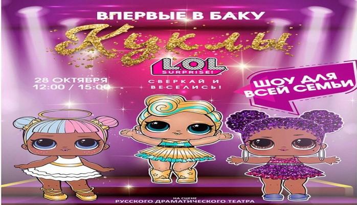 Впервые в Баку только 28 октября и только на сцене Русского Драматического Театра Вас ожидает самое яркое, красочное, феерическое шоу для все семьи "Куклы L.O.L - сверкай и веселись". Цветы жизни по всему миру в восторге от них и уже совсем скоро они будут радовать детишек в самом крутом шоу этого года с большой сцены нашего города.