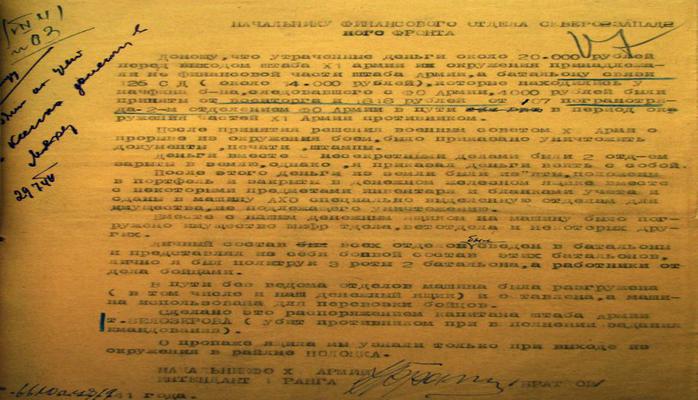 Доклад начальника финансового отдела Северо-Западного фронта начальнику финансового управления НКО СССР
