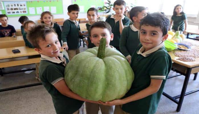 42 kiloluk bal kabağı şaşırttı! Okulda...