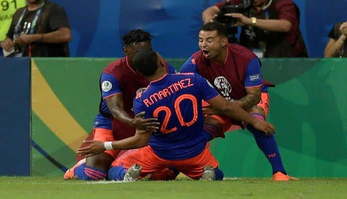 Kolombiya, Salvador kentindeki Arena Fonte Nova'da oynanan mücadeleyi, Roger Martinez'in 71 ve Duvan Zapata'nın 86. dakikadaki golleriyle 2-0 kazandı.