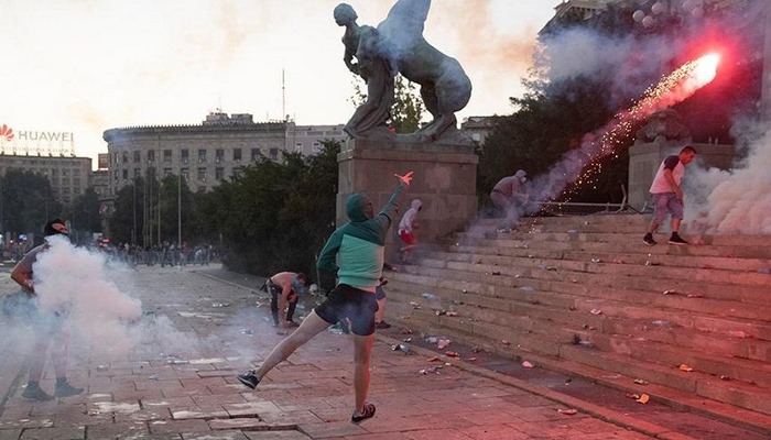 Önceki gece başkent Belgrad’da çıkan olaylarda birçok gösterici yaralanmış ve bazı araçlarla dükkanlara zarar verilmişti.
