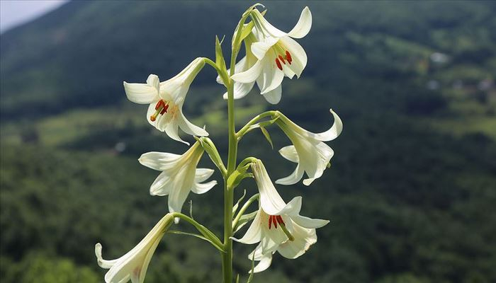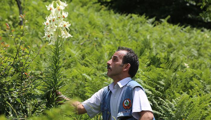 Yılmaz, yaklaşık 1,5 metre boyunda olan "Mis/Akkuş Zambağı"nın bu aylarda çiçek açmaya başladığını ve görenleri büyülediğini kaydederek, iklim şartlarına göre bitkinin 15-20 gün ömrü olduğunu aktardı.