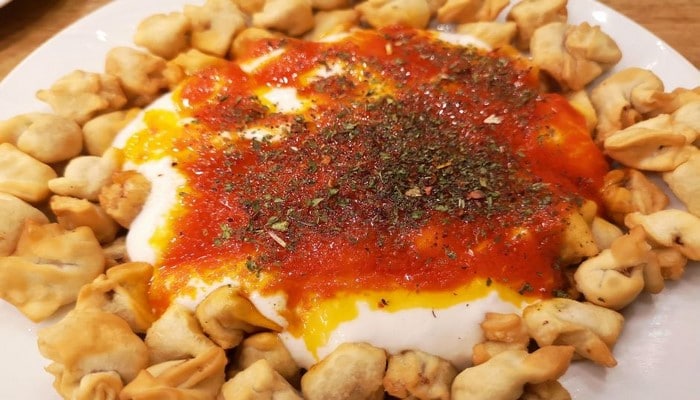 Kızarmış minik kıymalı mantıların sarımsaklı yoğurtla buluştuğunu, üstüne cızırdayan tereyağında yaptığınız salçalı, pul biberli sosu döktüğünüzü düşünün... Ortaya çıkan lezzete dayanmanın çok zor olduğun farkındayız. Bu sebeple hemen tarifi paylaşıyoruz.